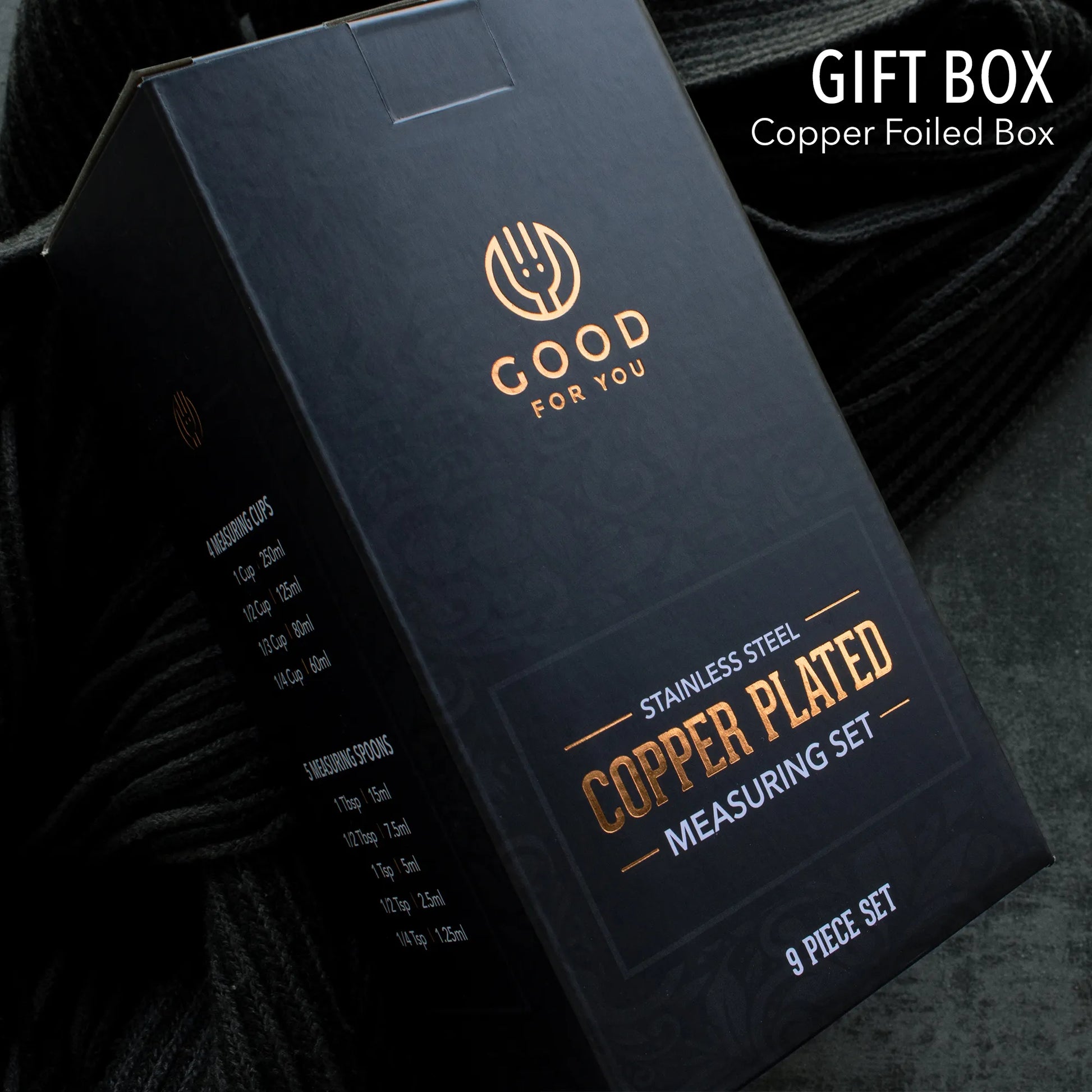 - KEEPSAKE STORAGE BOX: With glam rose gold foiled typography and helpful conversions, this set’s decorative box will be a wonderful decorative accent as a gold kitchen accessory in luxe decors. It’s also a beautiful Christmas gift for cooking or 7 year anniversary copper gift for him or her.