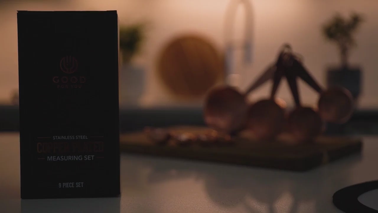 - ELEGANT DECORATIVE STYLE: With a rich copper plated finish, this set of hard-working stainless steel measuring cups and spoons are equally as refined in classic and modern kitchen decors, from vintage farmhouse to an upscale modern chef’s kitchen, infusing the perfect touch of charm and elegance.