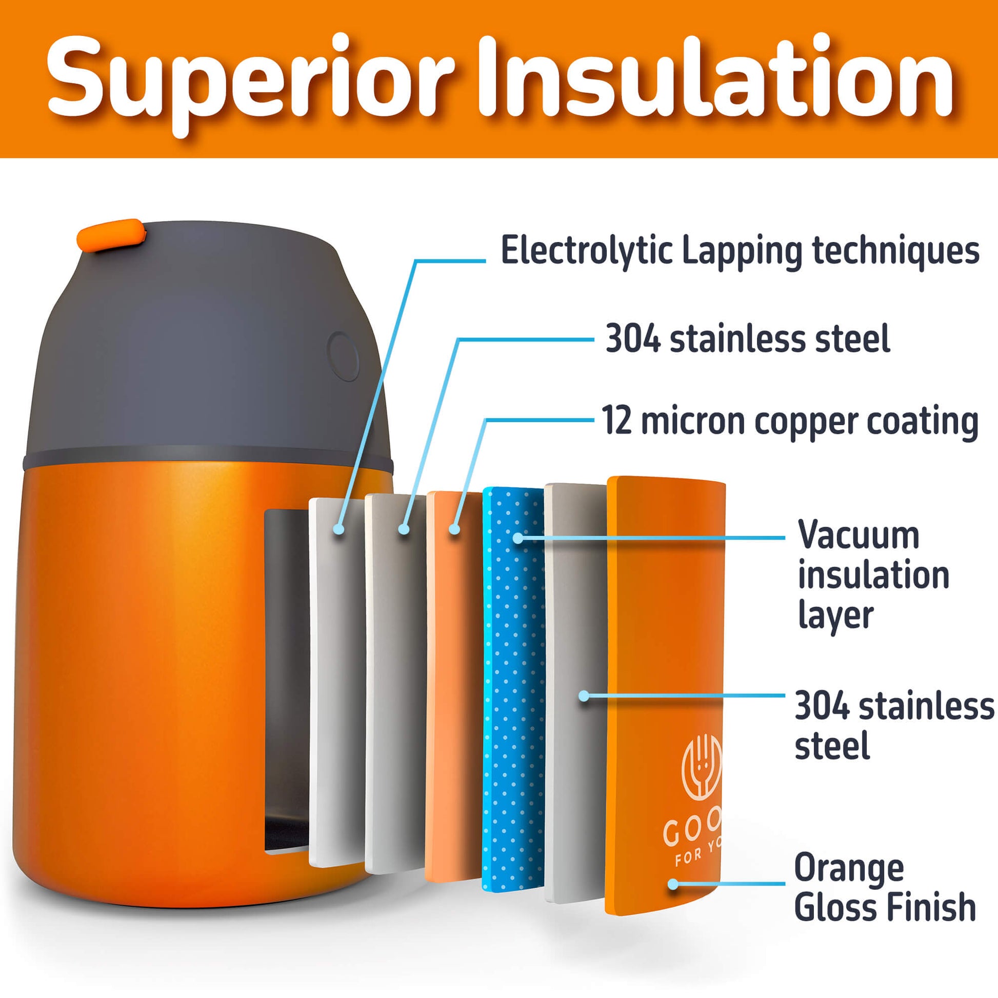 - ✔ MAINTAINS FOOD TEMPERATURE - Keep soups hot and juices cold for longer time periods. This thermal food storage jar can keep food warm for up to 9 hours or cold for 16 to 24 hours.